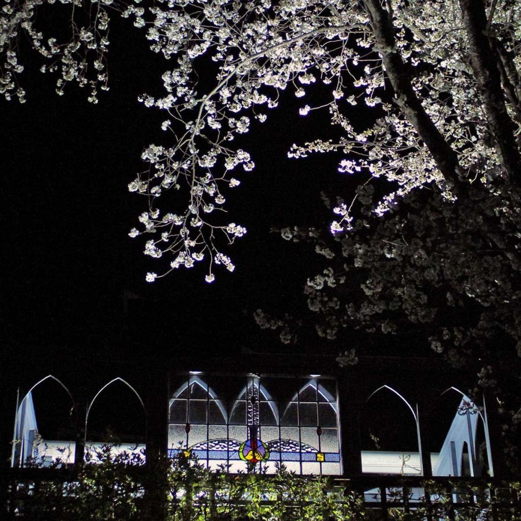 とっても素敵!アートですね!夜桜とステンドグラス、斬新です!