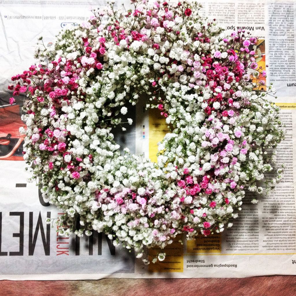 とっても素敵なリースになりましたね!カスミソウもうまく使えばおしゃれになりますね!