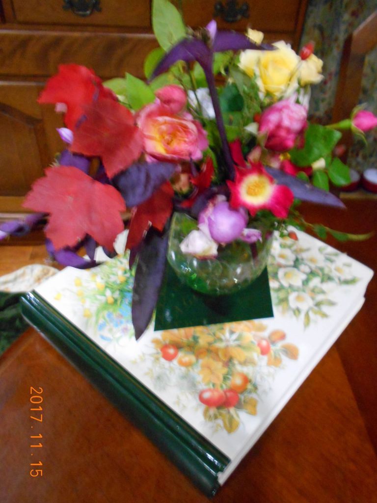 夕方霜情報がでましたので、弱りそうなお花をカットしてお部屋で楽しみます。