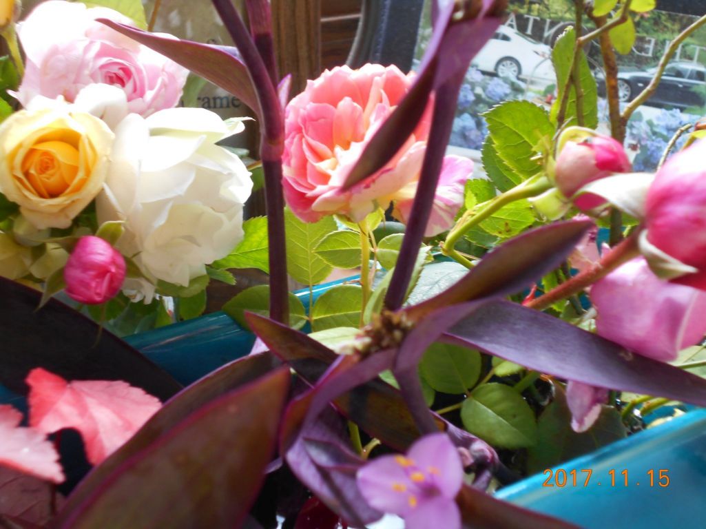 昨晩の霜情報でお部屋に飾って楽しみます。紫つゆ草は昔よく見かけ、最近横浜ガーデンで見かけ、欲しかったら、運よく頂きました。可愛いピンクのお花が今朝さいてくれました。