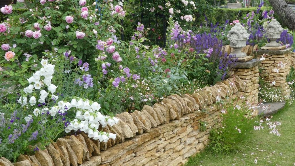 とっても素敵なお庭ですね。爽やかカラー それとコッツウォルズ風ストーン ととても真似できないです。素敵すぎます。カンパネラやエリゲロンは沢山増えるからいいですよね。早くたわわな薔薇をと一生懸命ですが、今年2年目の苗ばかりで来年の春にはと期待!このようなお庭にはまだまだなりそうもありません。