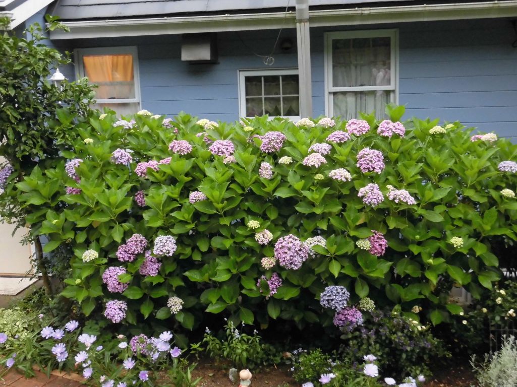 すてき~( *´艸`)♡ おたふくアジサイ、大好きで探してるんですがなかなか売ってないんですよ。いっぱいあってお家の色とマッチしていて素晴らしいです!私、あじさいも大好きなんですよ♡
