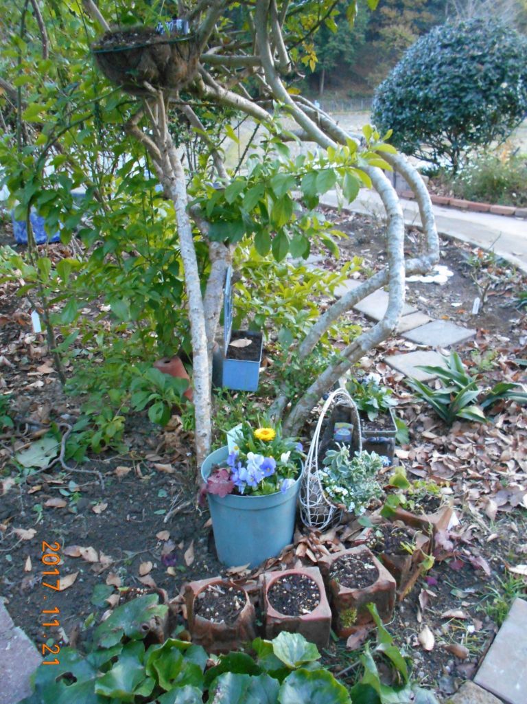 少しだけ寄せ植え、小さな鉢植えばかり ここの場所気に入ってくれるでしょうか?