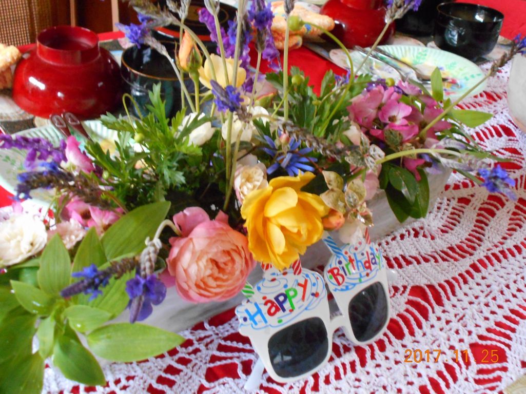 お孫さん二人の誕生会、楽しそうですね。綺麗なお花、お孫さん達も喜ばれますね〜
