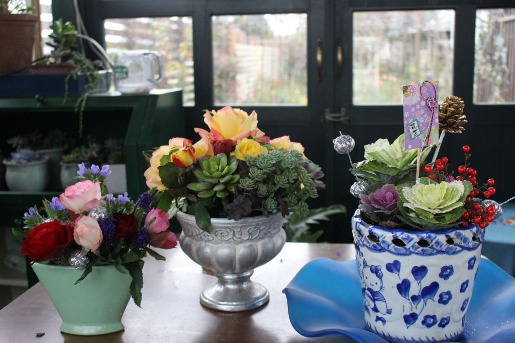 冬はアレンジメントや寄せ植えが楽しいですね(*^^*) いろいろできるコンサバトリー、いいなぁ~♡