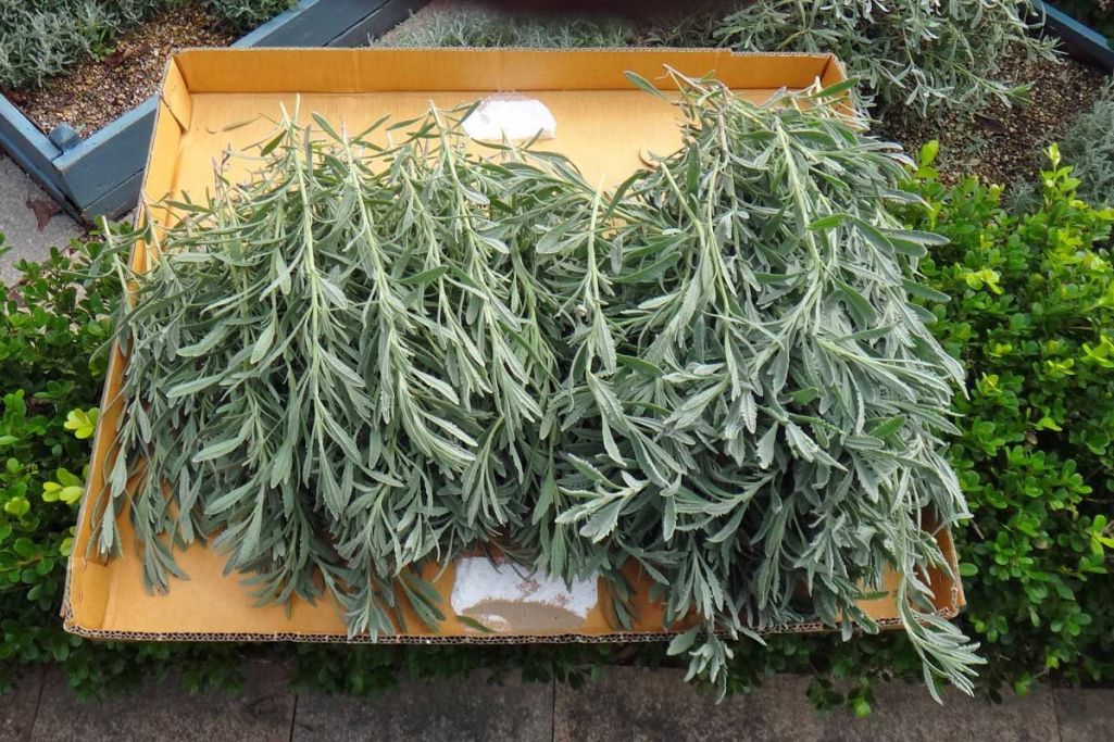 ラベンダーは虫がつかなくていいですね(*^^*) 私は初夏と秋口に剪定して、虫よけとして使っています。リースにするのもいいですね(^_-)-☆いい香りがしそう♡