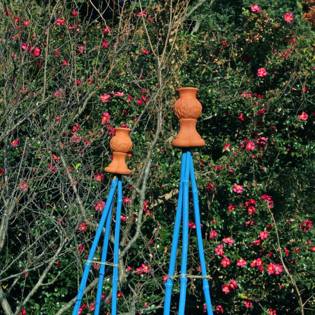 竹で!いいアイデアですね~( *´艸`)♡ 青に素焼きの茶色がとても素敵ですね!