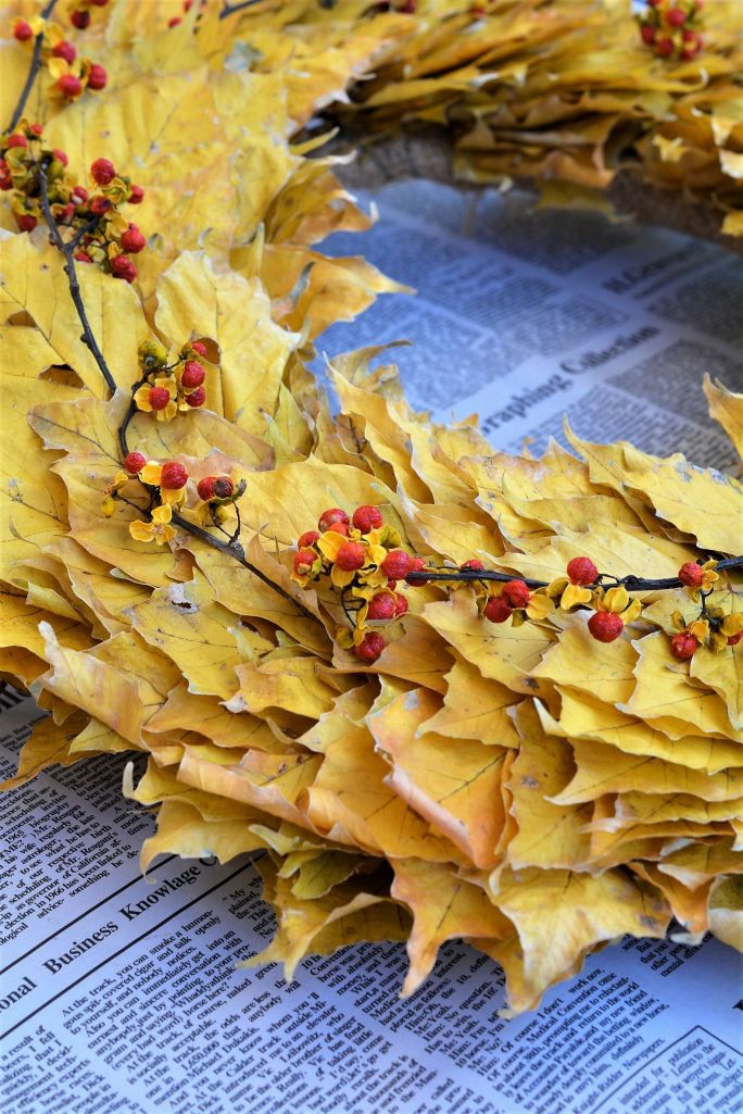 黄金色のリース素敵ですね 赤い実は?