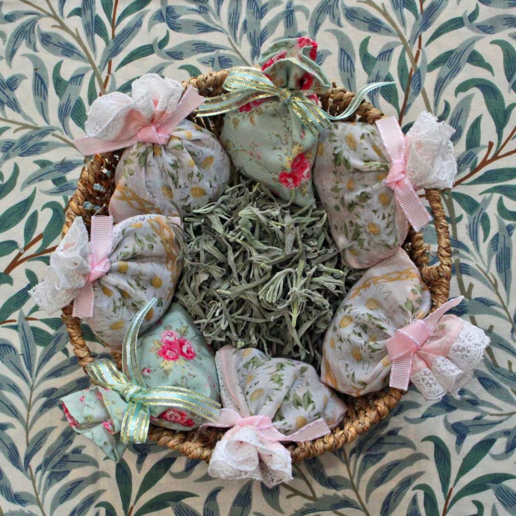 ラベンダーは実の部分をポプリにとばかり思っていました。が、葉でいいのですね。可愛い布に入れて楽しみたいですね。素敵です。