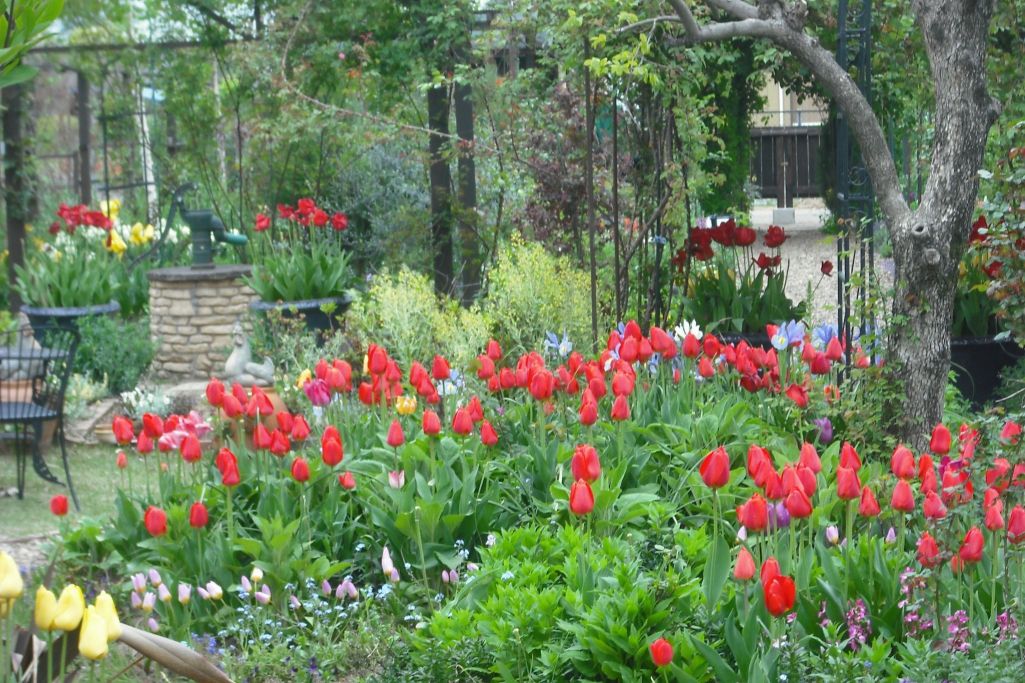 たくさんの球根を毎年足して、この日が来るのを楽しみに待つのですね。私はチューリップはコンテナ用にちょっとだけしか植えられませんが、広いスペースがあったらこんな風にしてみたいです♡