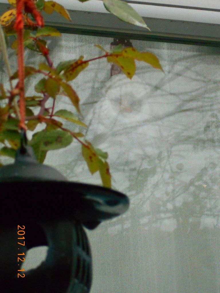 パーゴラに南部鉄の風鈴と薔薇の葉 風に揺れます。
