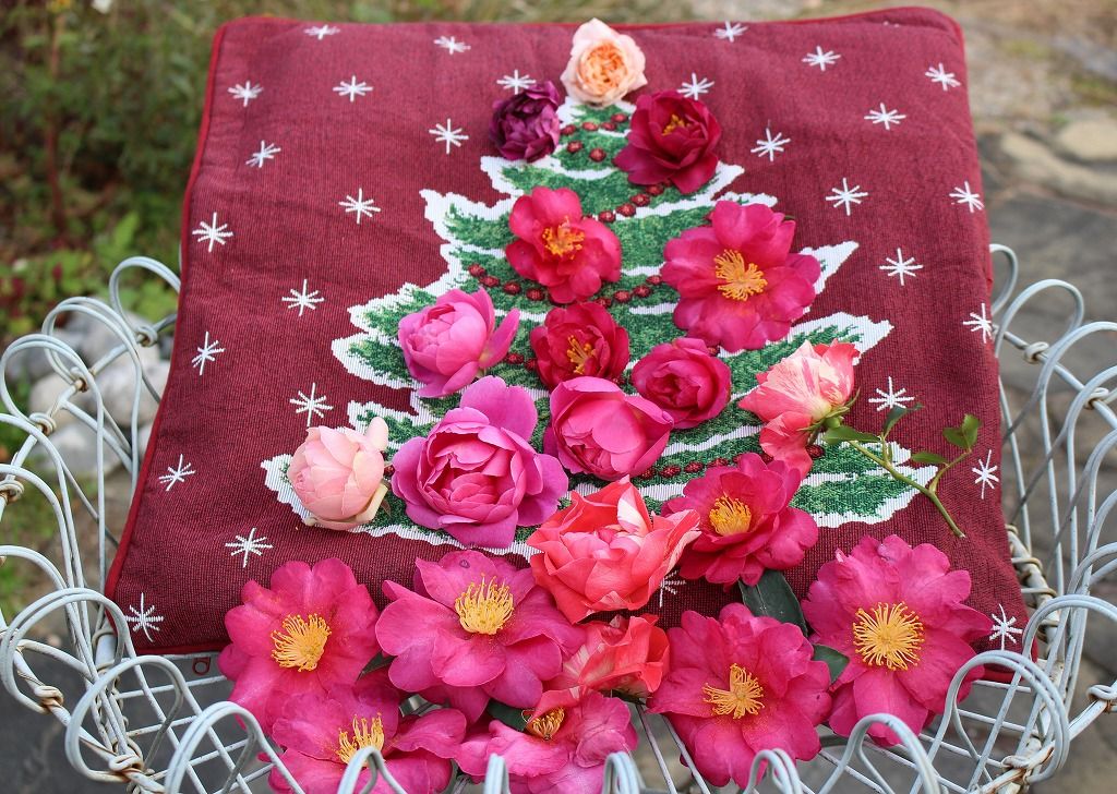 薔薇と山茶花のオーナメント実物はすばらしいですね。