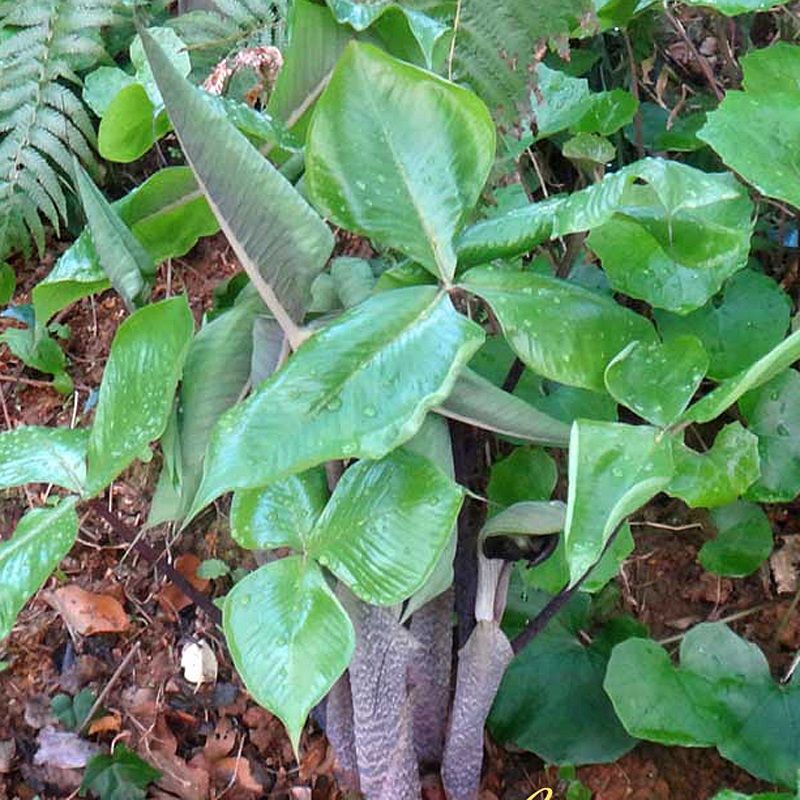 これは3月下旬に枝葉が伸びて花を咲かせたときの写真です。庭の常緑樹の陰で育っています。葉は1枚が60センチほどまで大きくなります。ちょっとグロテスクにも見えて好き嫌いが分かれますが、この春オープンガーデンンでこの苗を出していたら、買ってくれた方もいらっしゃいました。