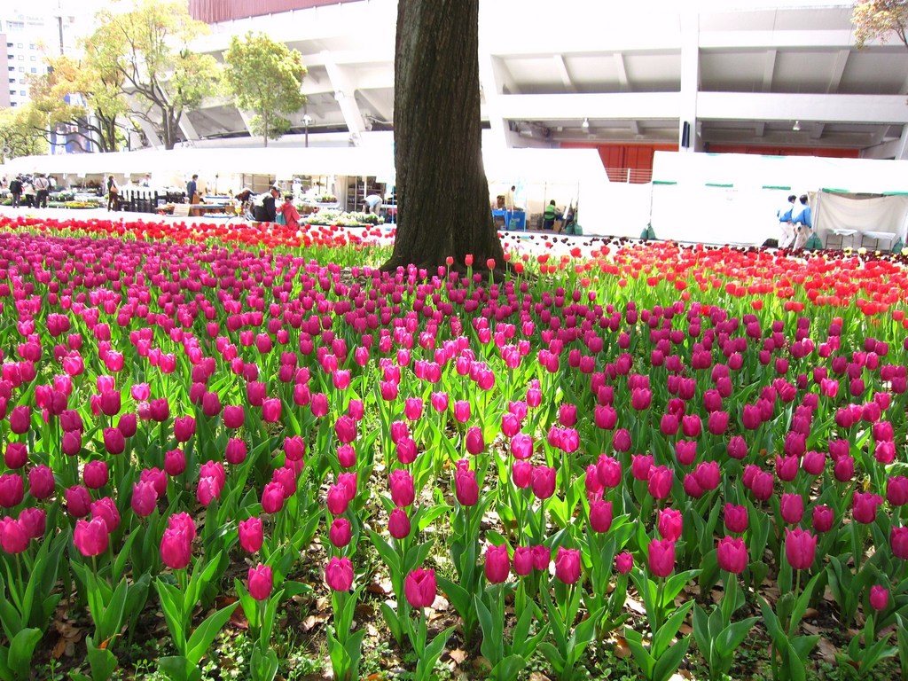 チューリップはこうしてまとめて植えると圧巻の迫力ですね。