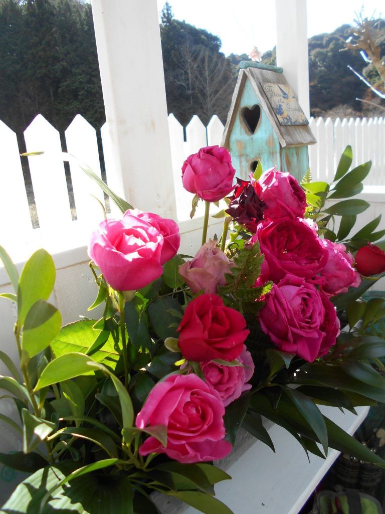 この場所に飾りたい薔薇をアレンジメントしてみました。いい香りも・・・