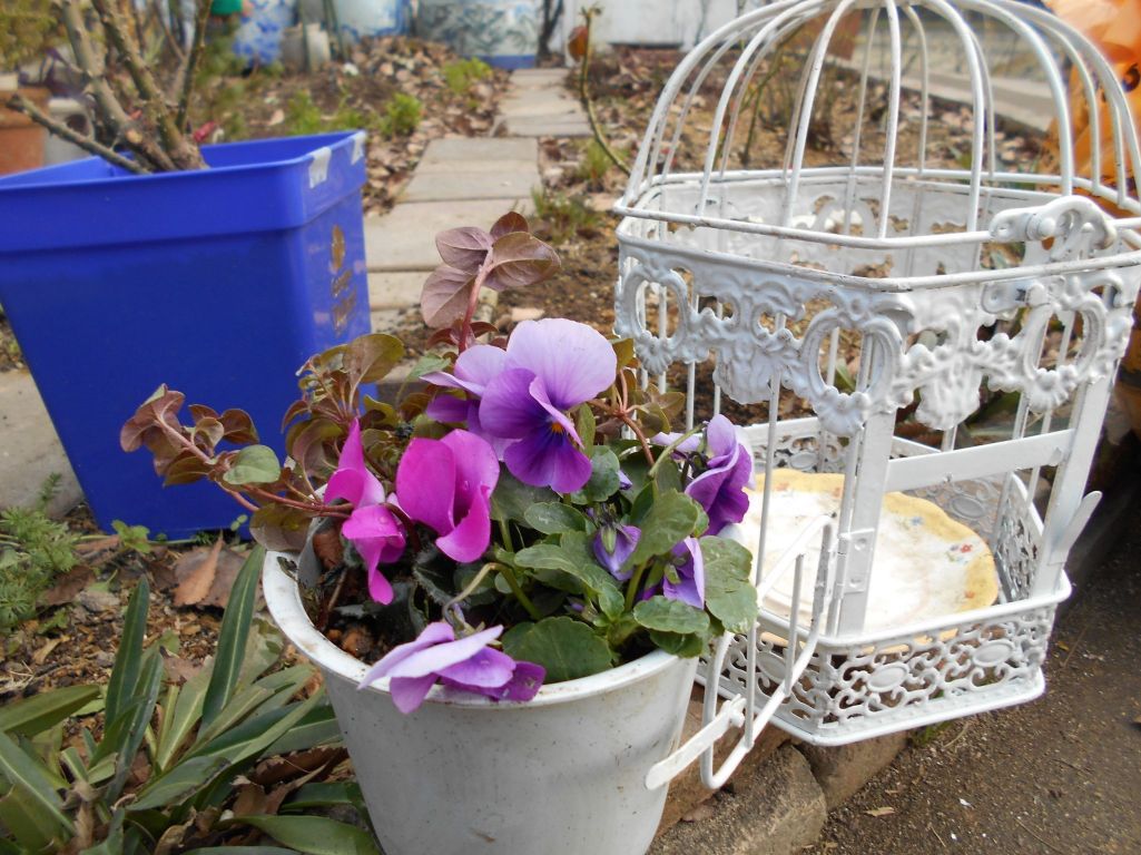 リシマキア、ガーデンシクラメン、ビオラで寄せ植えハンキングを作りました。ガゼボの天井からは軽くしないと落っこちそうで( ^ω^)・・・