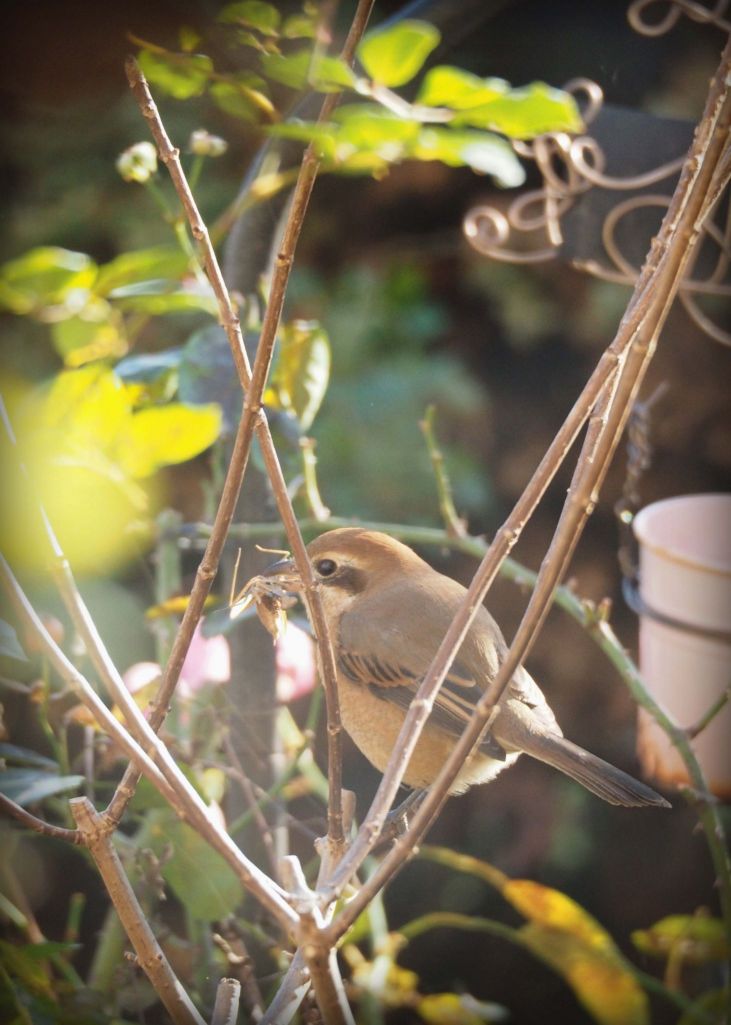 餌をgetしたモズ君をカメラにおさめるなんて洲ご技ですね