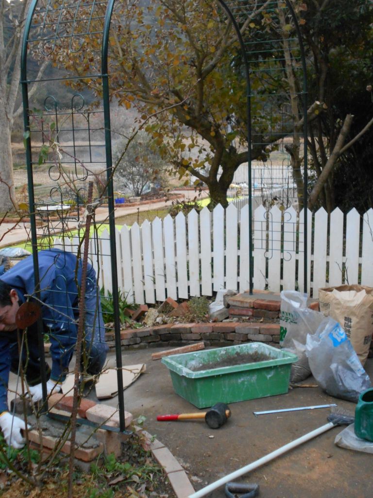 アーチの土台作りのために、根元にお花も移植です。