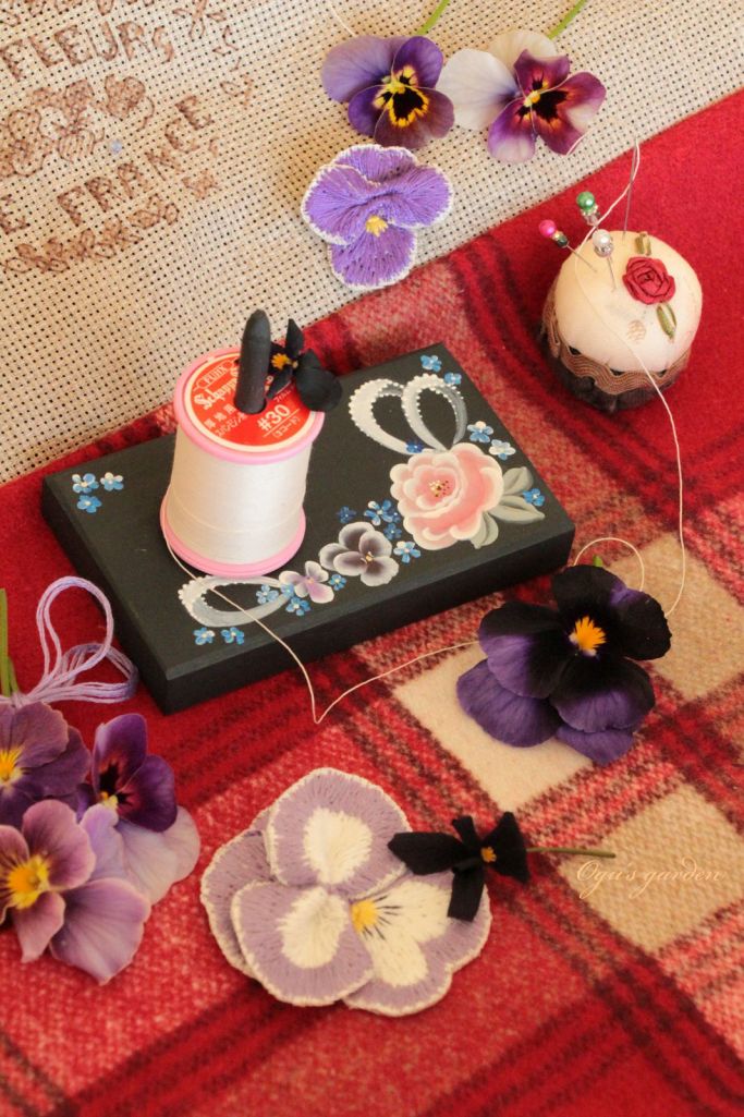 わー!すごい( *´艸`)♡ トールペイントも刺繍も超素敵! このビオラの刺繍って、河本麻記子さんがバラの家でプレゼントじゃんけんの時に配って大人気だったアレと同じですよね。こんな近くにも作れる人がいたとは!今度実物を見せてくださいね(^_-)-☆