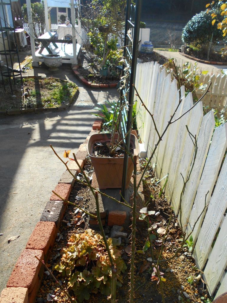玄関門扉を開け、遊べる庭へのアーチを設置できたので、薔薇の移動で、カクテルの鉢を誘引、ここから、パーゴラ、ガゼボへと視線が( ^ω^)・・・