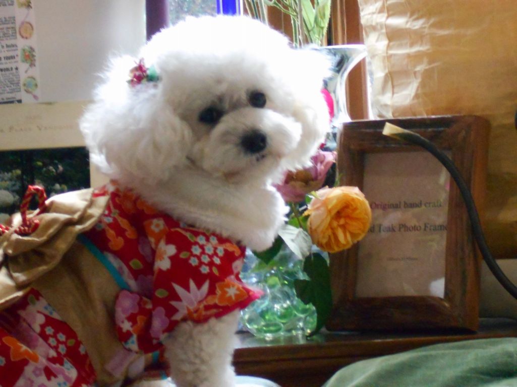 愛情いっぱいで育ててもらってるキャンキャンとバラの素敵な年賀状が出来ましたね。