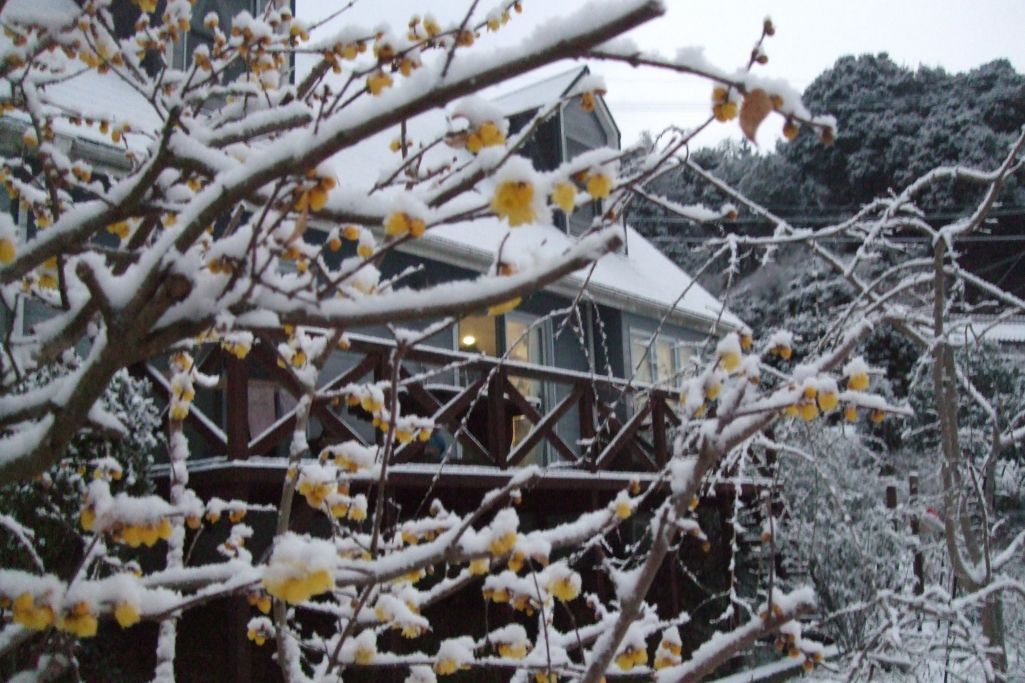 ロウバイも冬の風物詩ですね。ご近所の散歩道にロウバイが咲いています。
