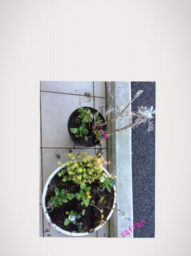 シロタエギク、パンジー、アリッサム