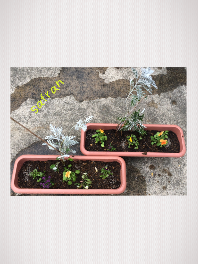 シロタエギク、パンジー、アリッサム