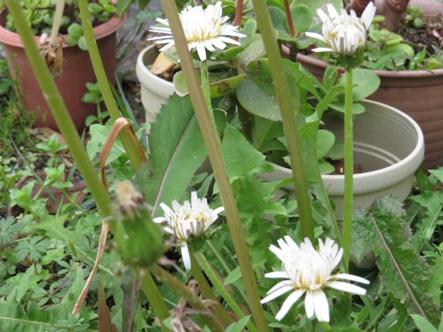 シロバナタンポポ 1月には自生したタンポポの 姿が見えだします。