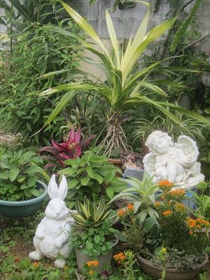 中央の植物は斑入りのアダン