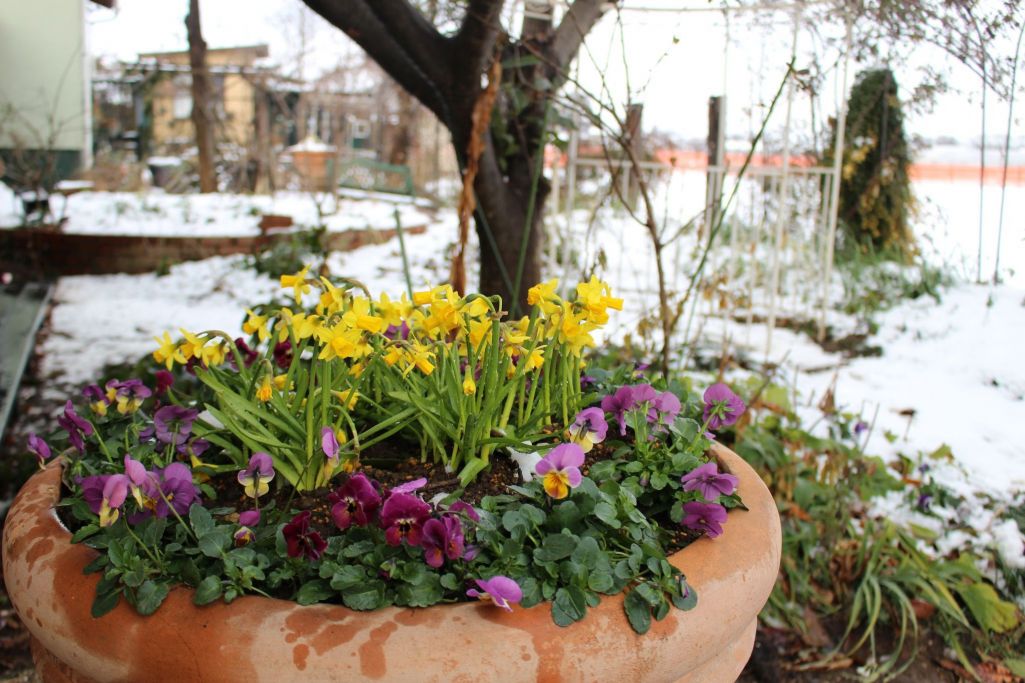 雪の中でもお花が咲いているのって、とても嬉しくなりますよね。バンザーイ