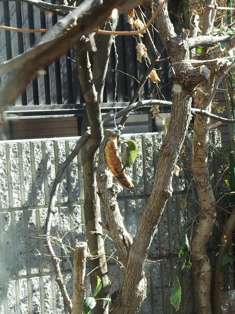 メジロはバナナも大好きなようですね、冬になって昆虫などが少なくなってくると木の実なども貴重な食料になってくるのでしょうね~