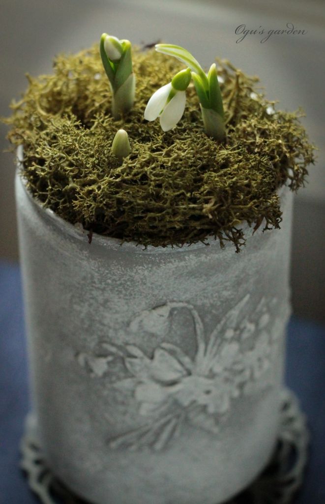 スノードロップⅠです。 咲き出したころの写真です。 トマトの空きをリメイクしました。