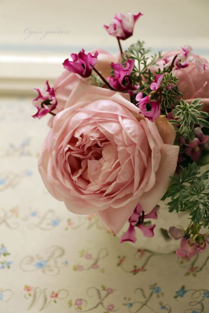 今年はこの季節まで蕾を付けたままにしてあったのでカットして部屋の中で咲かせました。ガーデンシクラメン(おりがみ)と一緒にアレンジできるなんて自分でもびっくり。トールペイントしたボードと記念に♡