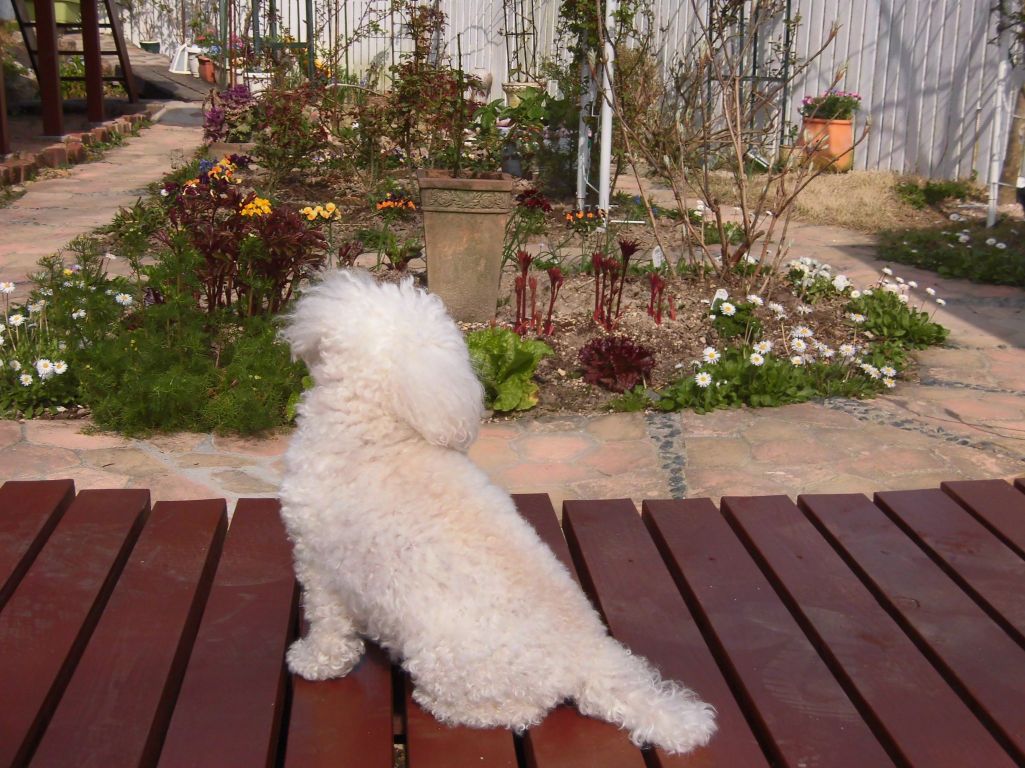 キャンキャンお散歩でテラスからの眺めお気に入り