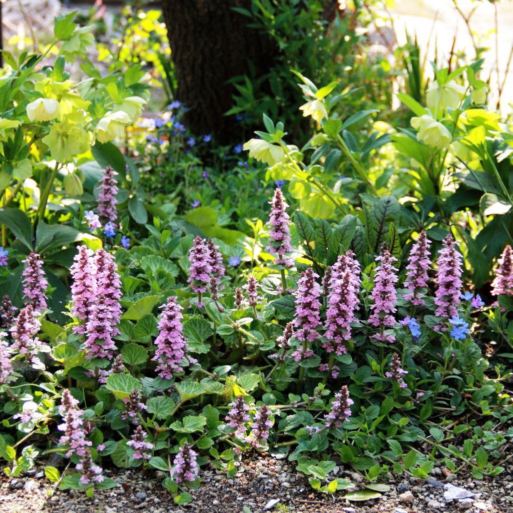 ここではアナガリス(だと思う)とクリスマスローズとアジュガ。