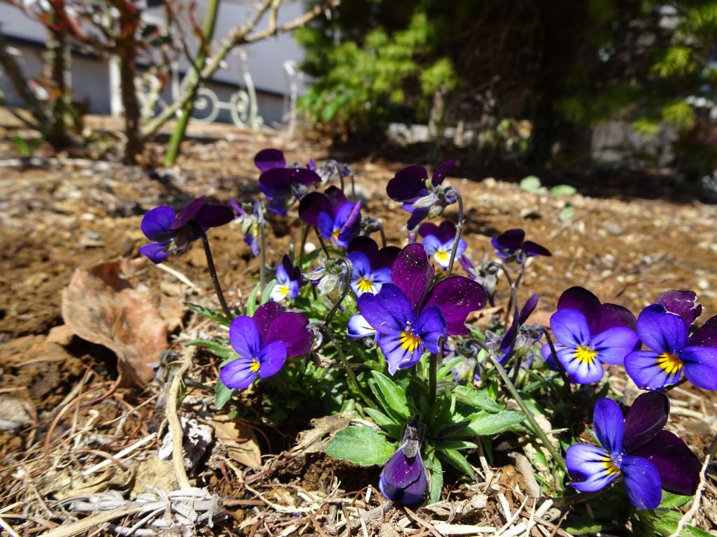 踏んでしまいそうな小さな宿根ビオラ。 凍ったかたい土の中で冬を越し 春の日差しを感じて顔を出しました。