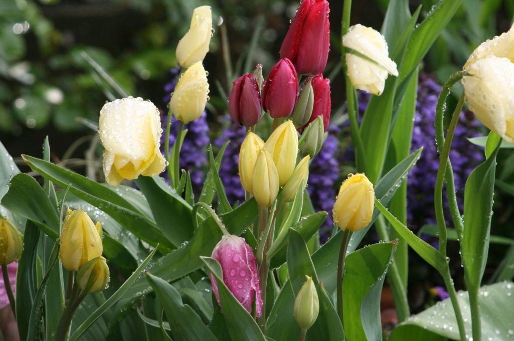 わが家はもうチュウリップは終わりました。枝分かれしたチュウリップって珍しいわ。雨のしずく、朝露なのかしら、しっとり感がいいですね。