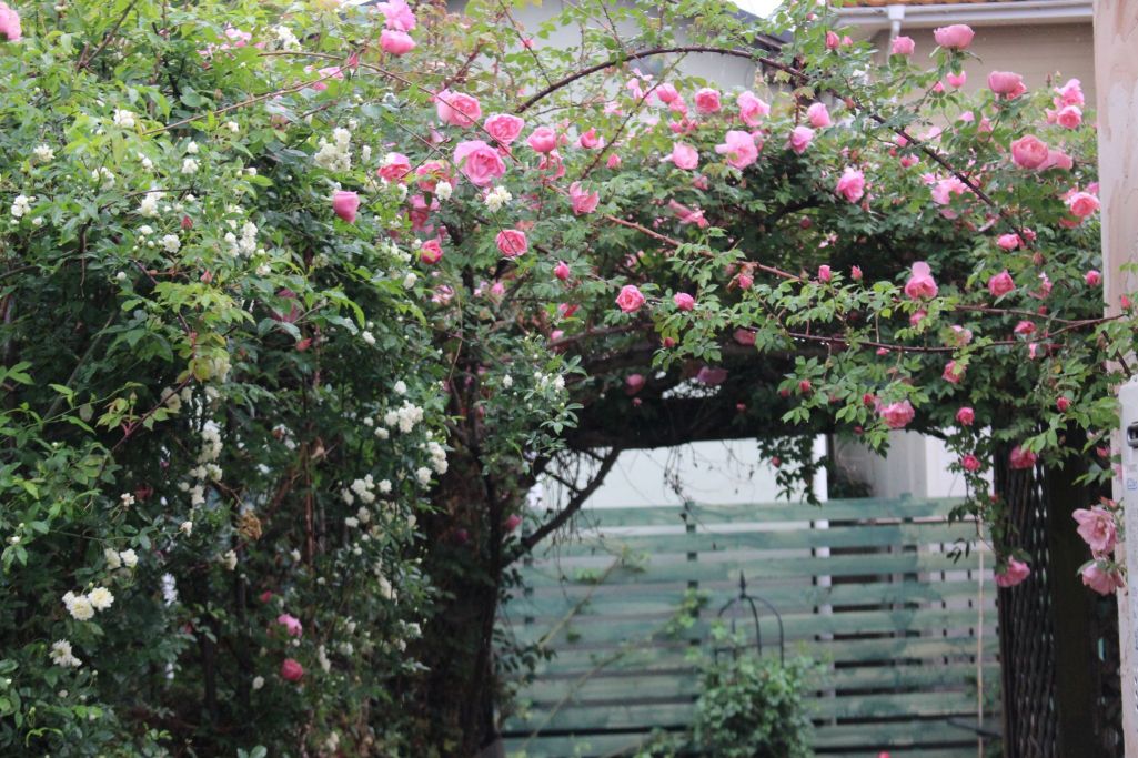 リージャンロード・クライマー もうこんなに咲いているのですか。素敵ですね。トンネルをくぐってみて、大きな樹とお会いしたいわ!