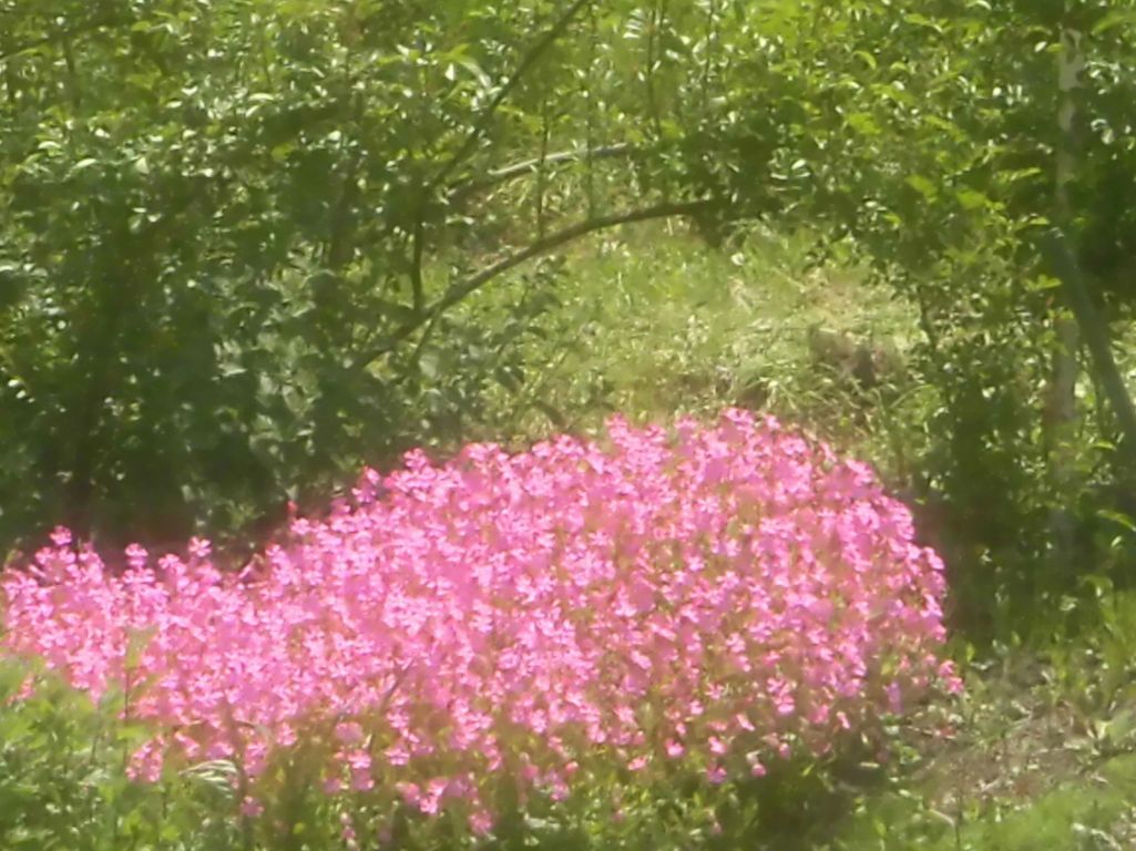 可愛いハート型の花びら5枚 減反の薔薇キングの根元にたわわに咲いているのを遠くからカメラに収めました。