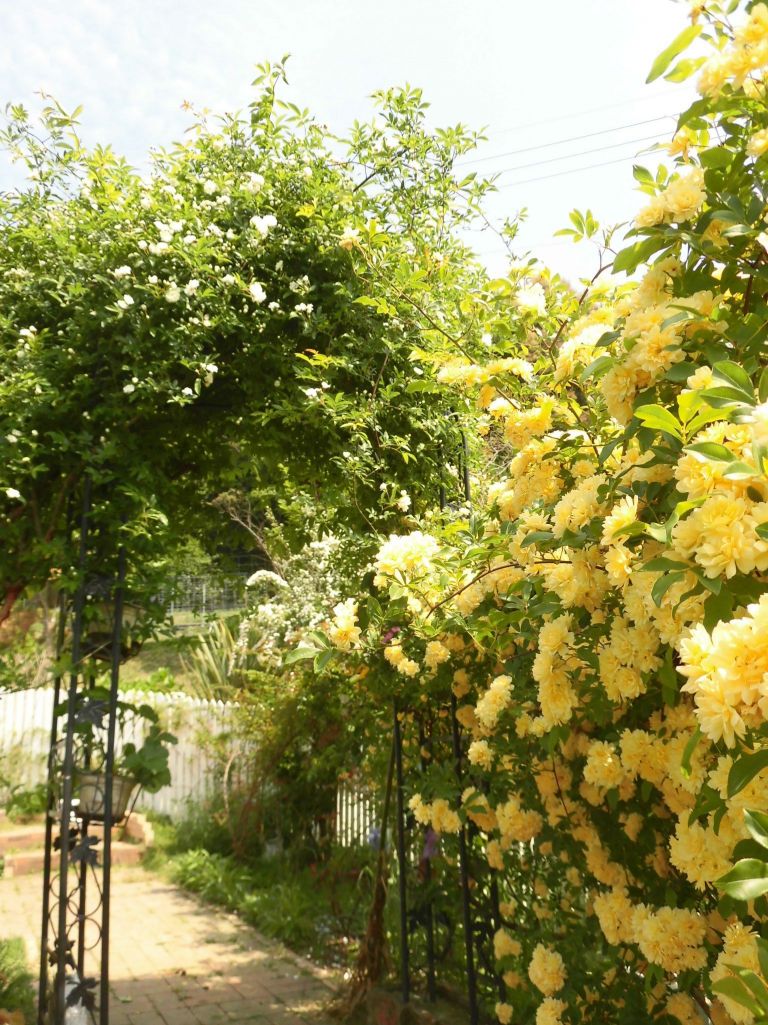 すごいボリュームのモッコウバラ。迫力感じます。