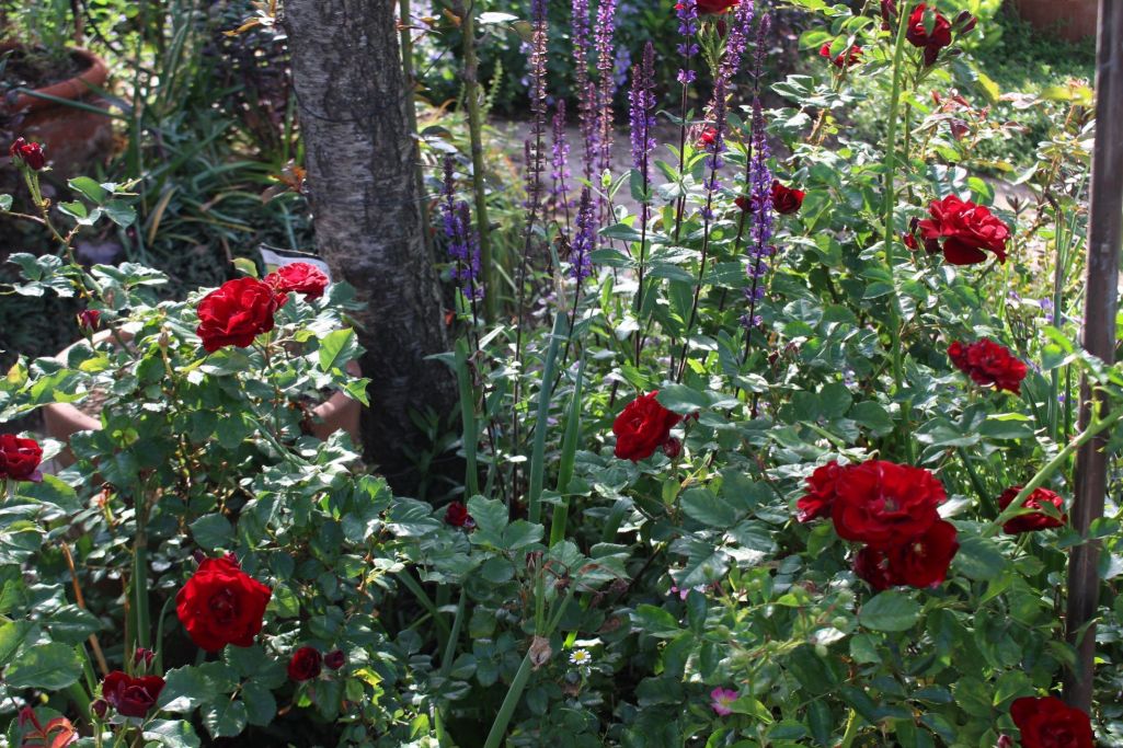 サルビアと赤い薔薇