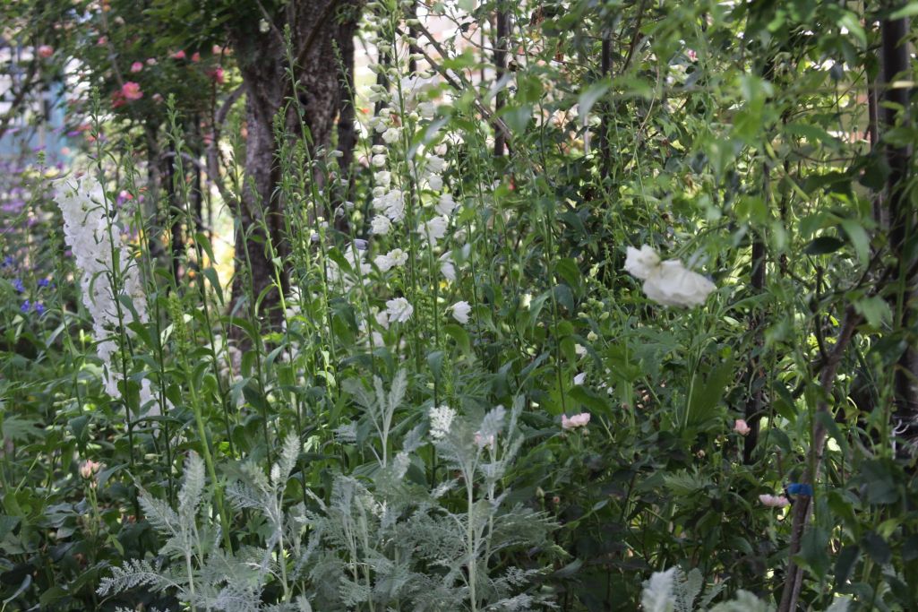 ホワイトガーデン白のデルフィニューム、ジキタリス、白たえレース