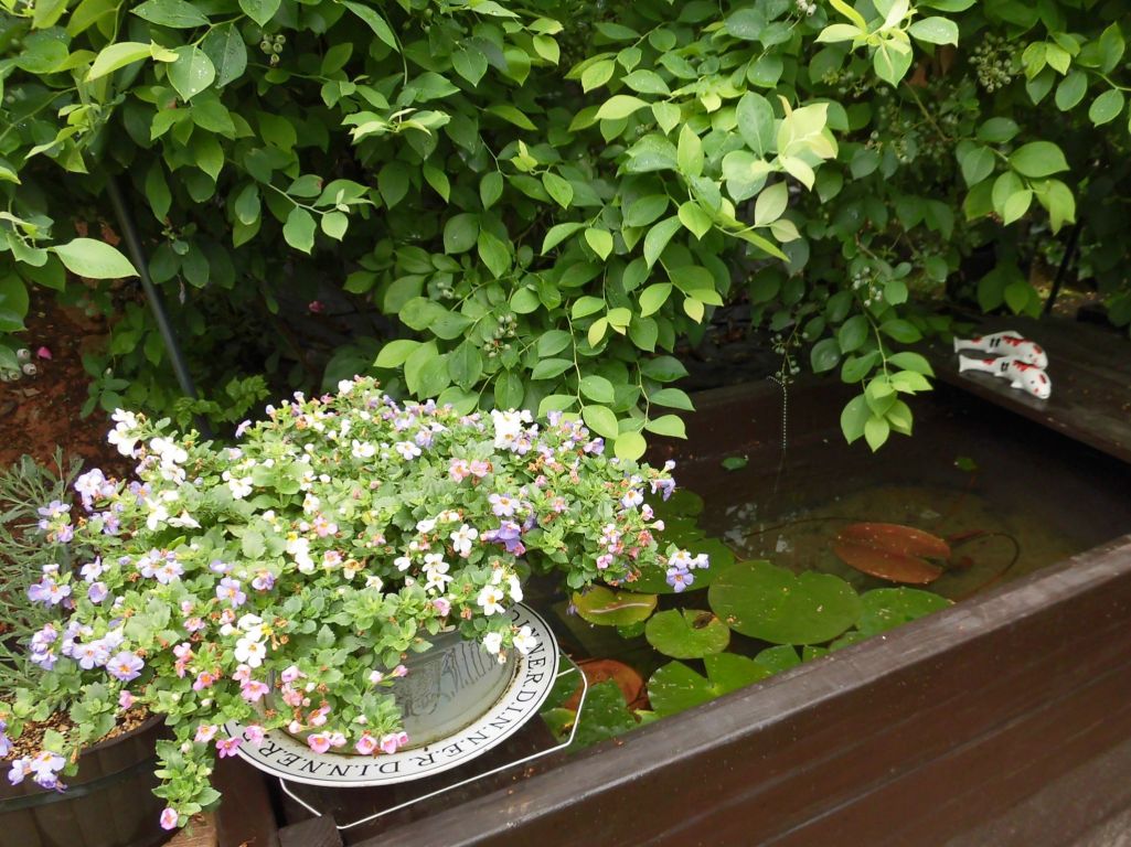 睡蓮発見!この器も手を添えていらっしゃいました。どれを見てもとっても素敵です。お花だけではなく全てが素敵です。見下ろせる眺めっていいですね。ご夫婦でイギリスに行かれたことが大きな力になってらっしゃるのかしらね。
