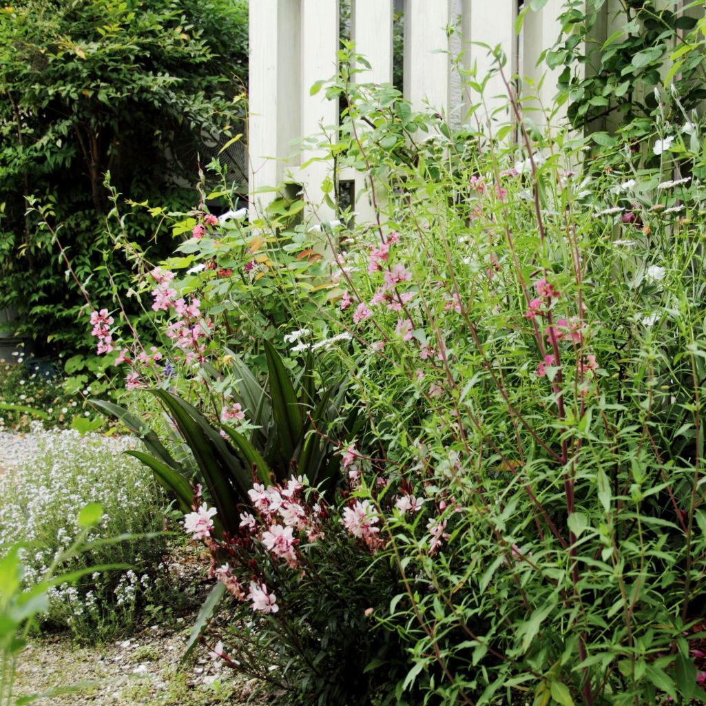 たまたまオレンジ色がかったピンクのガウラに合わせるようにオレンジ色のが咲いてくれました。