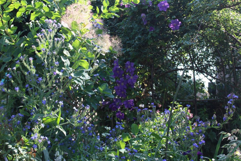 ウララやロサ系の薔薇が咲き終わり しばしブルーの花の庭