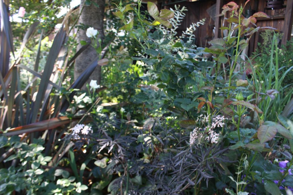 銅葉にピンクの花、ニワトコ