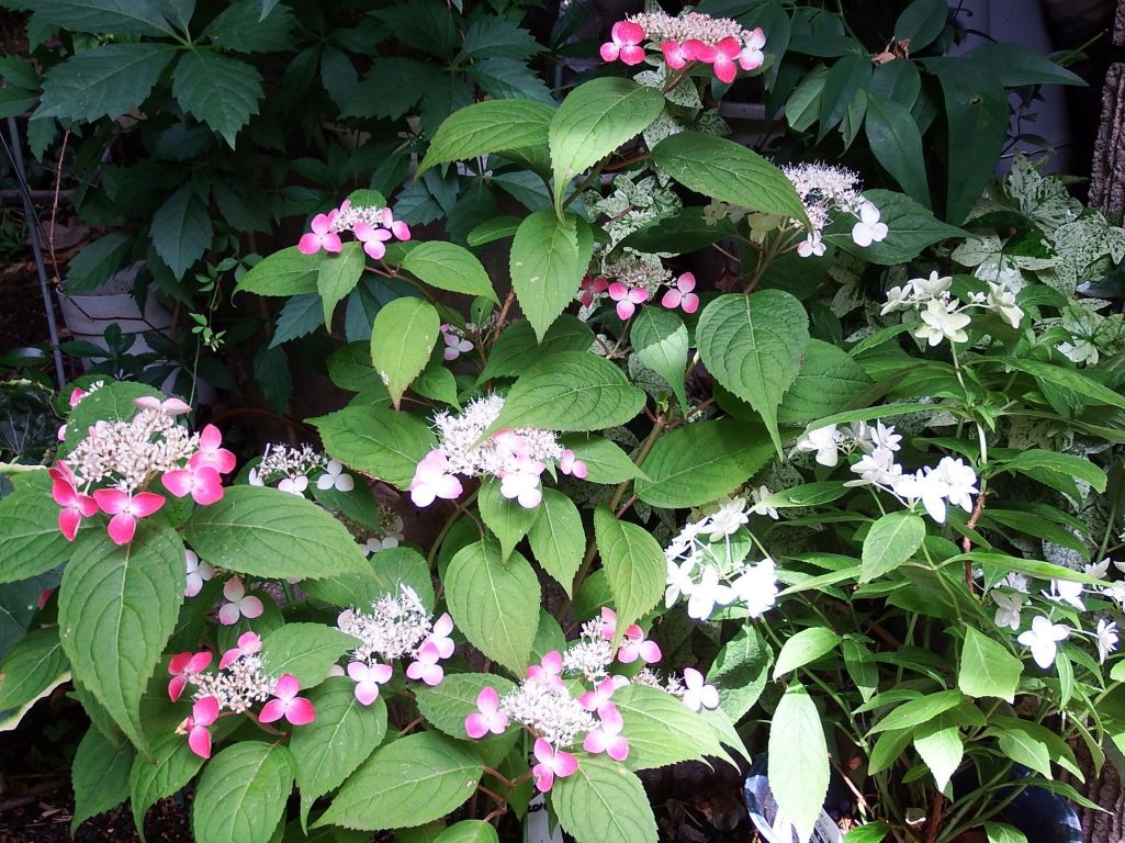 今咲いてる山紫陽花です 左が「紅」、右が純白の「白鳥」です
