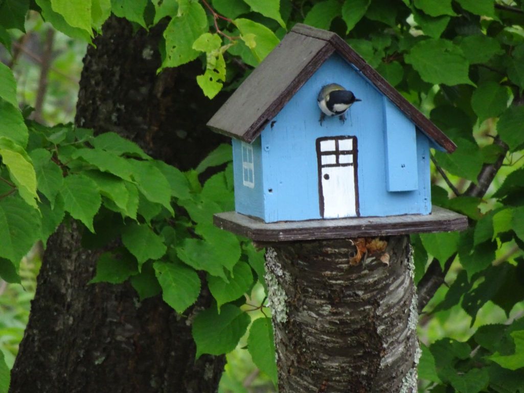 ナイスショット!お見事!お孫さんの手作り巣箱も大活躍!いいですね。(⋈◍>◡<◍)。✧♡ 最近、孫達がパパママの元での生活に追われ、わが家にはご無沙汰なので、羨ましい限りです! 孫とあそびたいなあ!