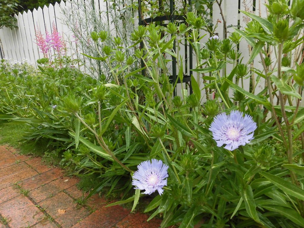 送迎の入口のボーダーガーデンには母との思いでストケシアが咲き始めてます。